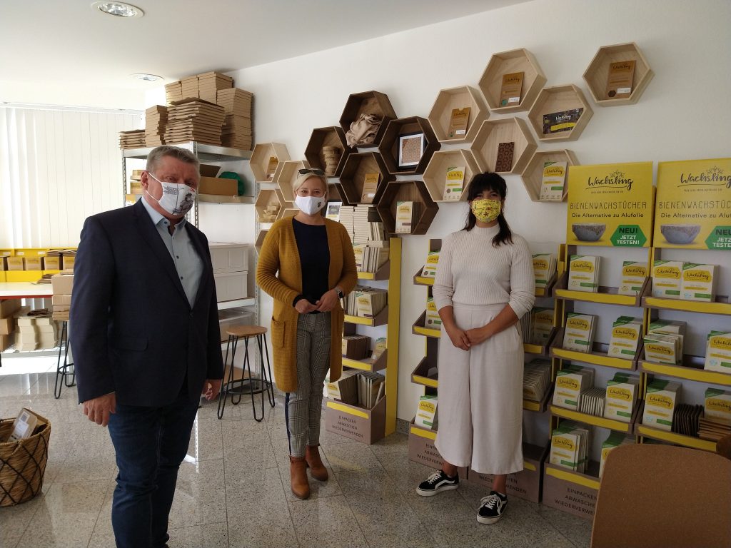 Gemeinsam mit unserem Bundestagsabgeordneten Hermann Gröhe und der Nievenheimer Ratsfrau Carola Westerheide war ich in dieser Woche bei dem StartUp-Unternehmen „Wachsling“ zu Gast. Vor Ort werden Bienenwachstücher aus Bio-Baumwolle, Kiefernharz, Kokosöl und natürlich auch Bienenwachs hergestellt. Die produzierten Wachstücher sind wiederverwendbar und können bei beispielsweise zum Verpacken von Brot, Obst oder Gemüse verwendet werden. Damit sind sie eine zeitgemäße und nachhaltige Alternative zur Plastikfolie.