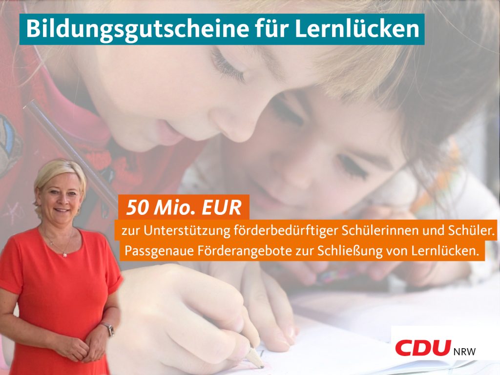 Um die Auswirkungen der Pandemie auf Schülerinnen und Schüler so gut wie möglich abzufedern, hat die Landesregierung frühzeitig verschiedene Maßnahmen ergriffen. Dazu zählt auch die Bereitstellung und Verteilung von Bildungsgutscheinen. Diese sind eine passgenaue Maßnahme, um individuelle Lernlücken zu schließen und kommen gerade förderbedürftigen Schülerinnen und Schülern zugute, die von den Einschränkungen der Pandemie besonders betroffen sind. Unsere Lehrkräfte kennen die Schülerinnen und Schüler am besten und können die Bildungsgutscheine daher zielgenau vergeben.