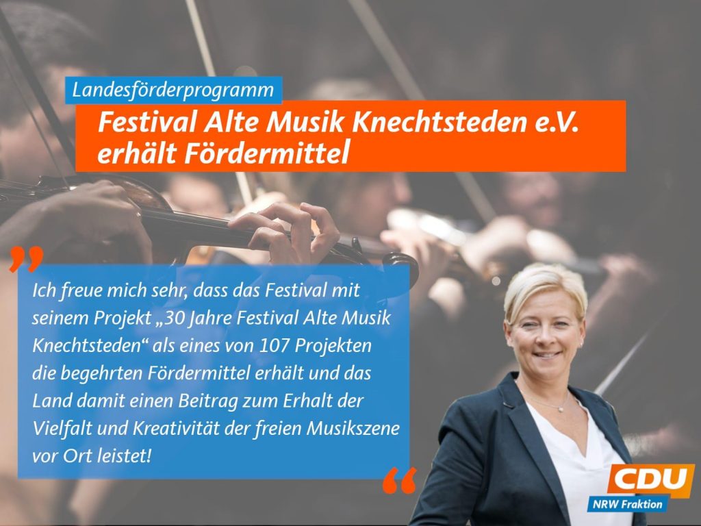 Ich freue mich, dass unter den 107 geförderten Projekten auch das „Festival Alte Musik Knechtsteden“ ist. Dazu gratuliere ich sehr herzlich. Wenn die Inzidenzwerte weiter sinken, bin ich zuversichtlich, dass das Festival „30 Jahre Vielfalt!“ im September 2021 stattfinden kann.