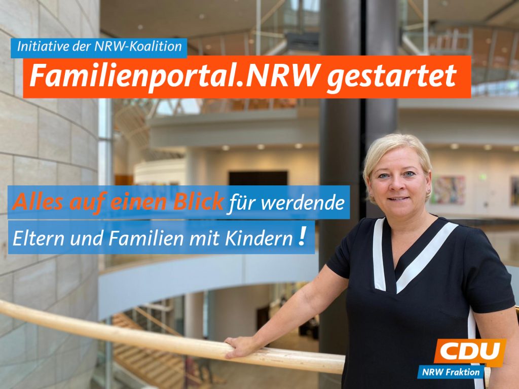 Mit dem Familienportal.NRW bündeln wir familienpolitische Leistungen, um Eltern sowie werdende Eltern zu entlasten. Wir nutzen damit die Chancen, die uns die Digitalisierung der Verwaltung bietet. Behördengänge können reduziert und Bürokratie abgebaut werden. Das Familienportal.NRW ist ein weiterer Erfolg unser familienfreundlichen Politik, da es niederschwellig, schnell und verlässlich Hilfestellungen zu Fragen rund um das Elternsein und das Aufwachsen von Kindern gibt.