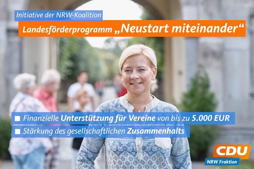 Die NRW-Koalition von CDU und FDP hat mit einer Initiative unmittelbar vor der Sommerpause einen „Neustart miteinander“ angeschoben: ein Förderprogramm für ehrenamtliche Vereine in Nordrhein-Westfalen. Das zuständige Heimatministerium hat schnell gehandelt und die Idee umgesetzt: Anträge für das Programm sind jetzt einfach und unbürokratisch online möglich. Jeder Verein kann bis zu 5000 Euro bekommen, um nach dem Lockdown und trotz andauernder Corona-Krise seine Veranstaltung auf die Straße oder in den Saal zu bringen.