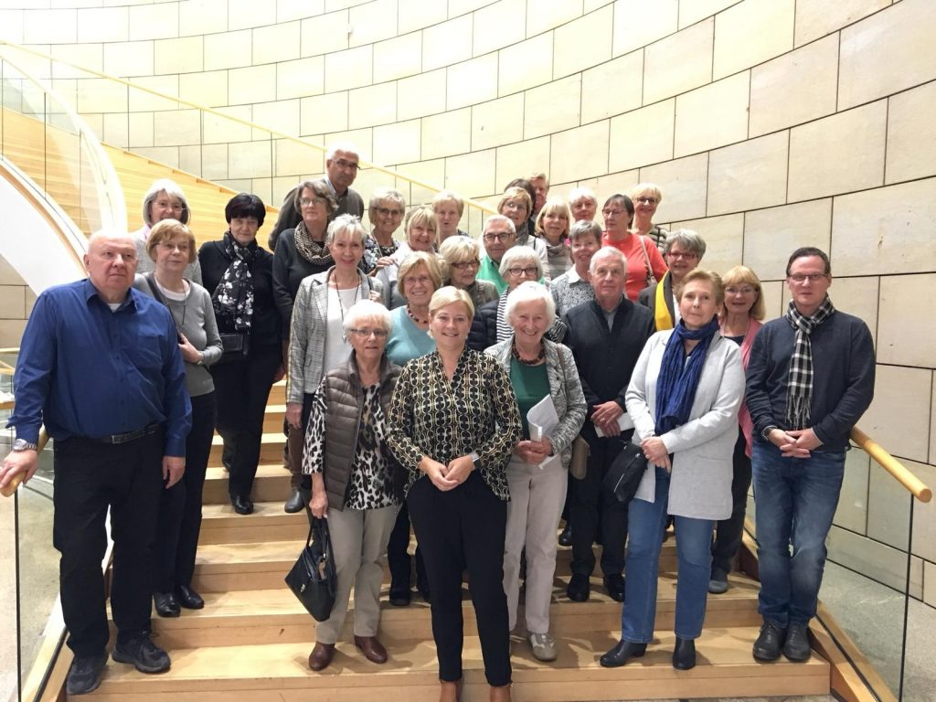 Das Programm der VHS Grevenbroich bot in diesem Jahr eine Fahrt zum Landesparlament nach Düsseldorf an, wo sich den Teilnehmerinnen und Teilnehmer die Gelegenheit zu einem Austausch mit mir bot. Gerne berichtete ich zunächst von meiner Arbeit im Landtag, meinen Fachaufgaben in den Ausschüssen für Familie, Kinder und Jugend, Schule sowie Frauen und Gleichstellung. Anschließend entwickelte sich schnell eine angeregte Diskussion über aktuelle Themen der Landespolitik. Dazu gehörte auch das drängende Thema des Strukturwandels im Rheinischen Revier. Dies passte gerade auch deswegen sehr gut, weil die Gruppe zuvor beim Besuch der Plenardebatte –wie bestellt- zum Plenartagesordnungspunkt 4 „Lebenswert, innovativ und klimafreundlich. Zukunftsfähige Entwicklung des Rheinischen Reviers strategisch gestalten!“  zugehört hatte.